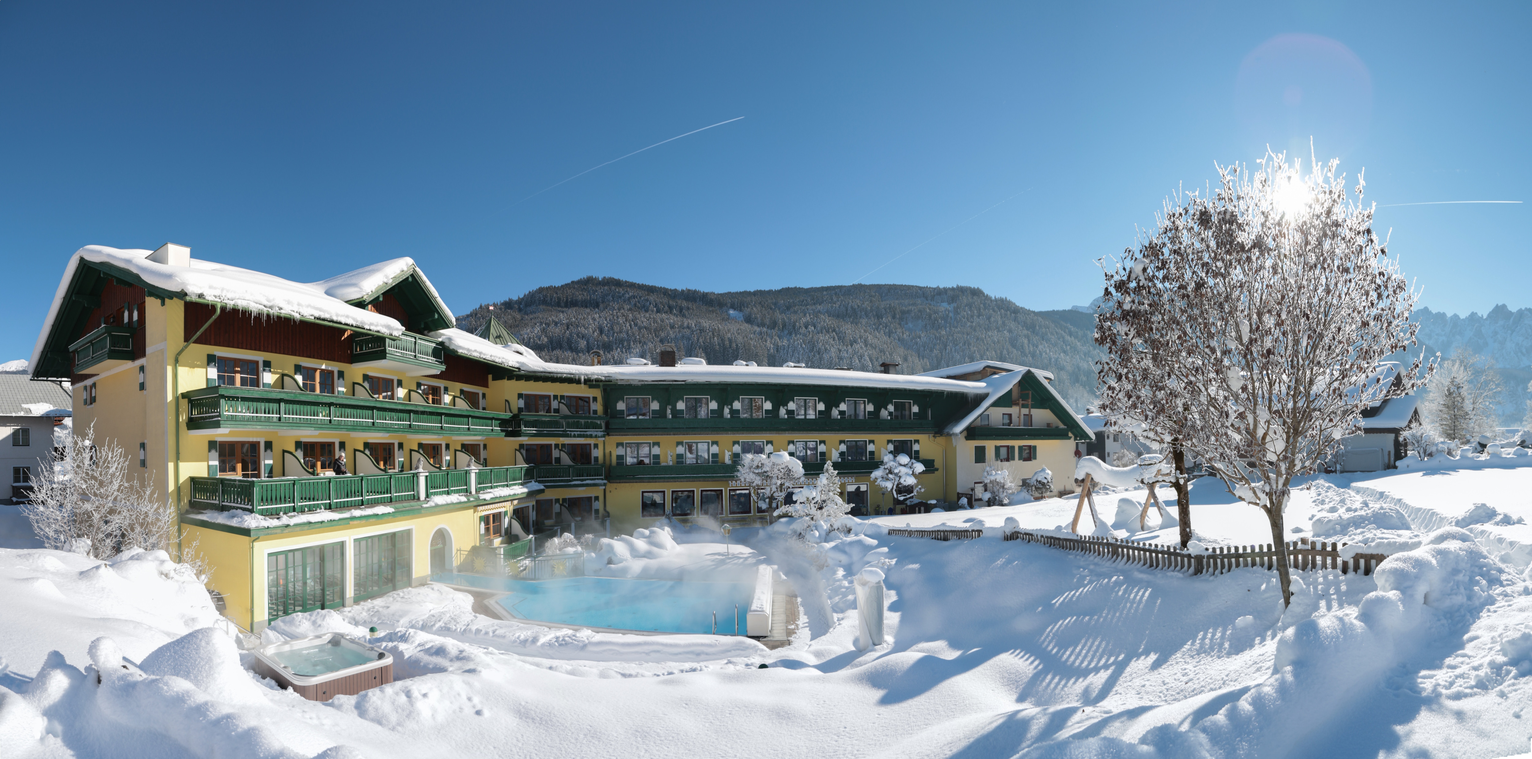 Unser 4 Sterne Familienhotel zeichnet sich durch die zentrale Lage am Fuße des Dachsteins, im Salzkammergut, im Herzen von Österreich aus.
