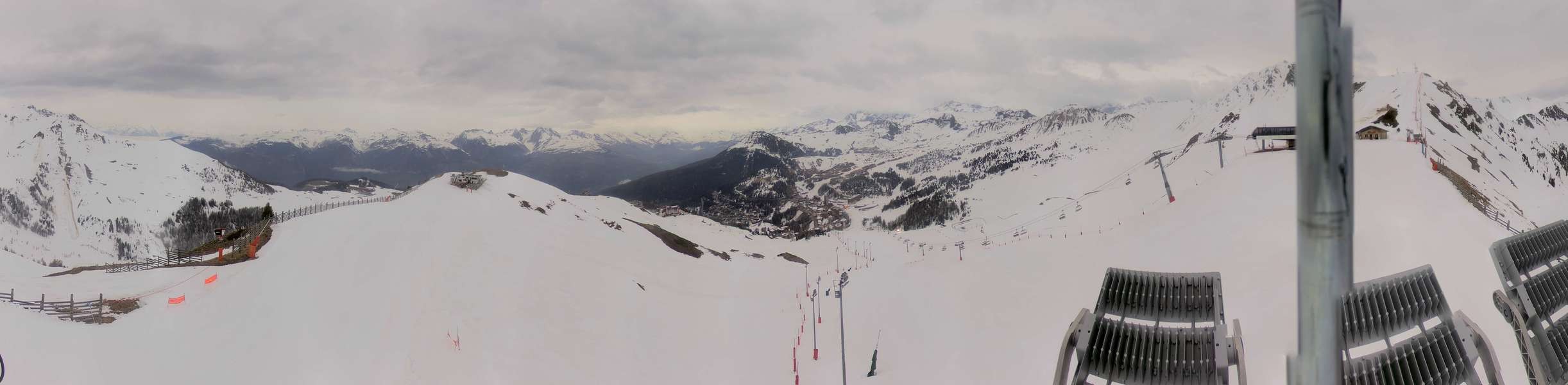 Diese Webcam zeigt die Bergstation Bécoin im französischen Skigebiet La Plagne und das umliegende Panorama.