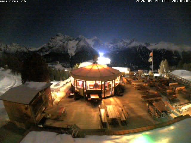 Archiviertes Webcam Bild: Scuol: Bergrestaurant Prümaran Prui am 26 Feb 2026 um 20:05 Uhr Aktuell