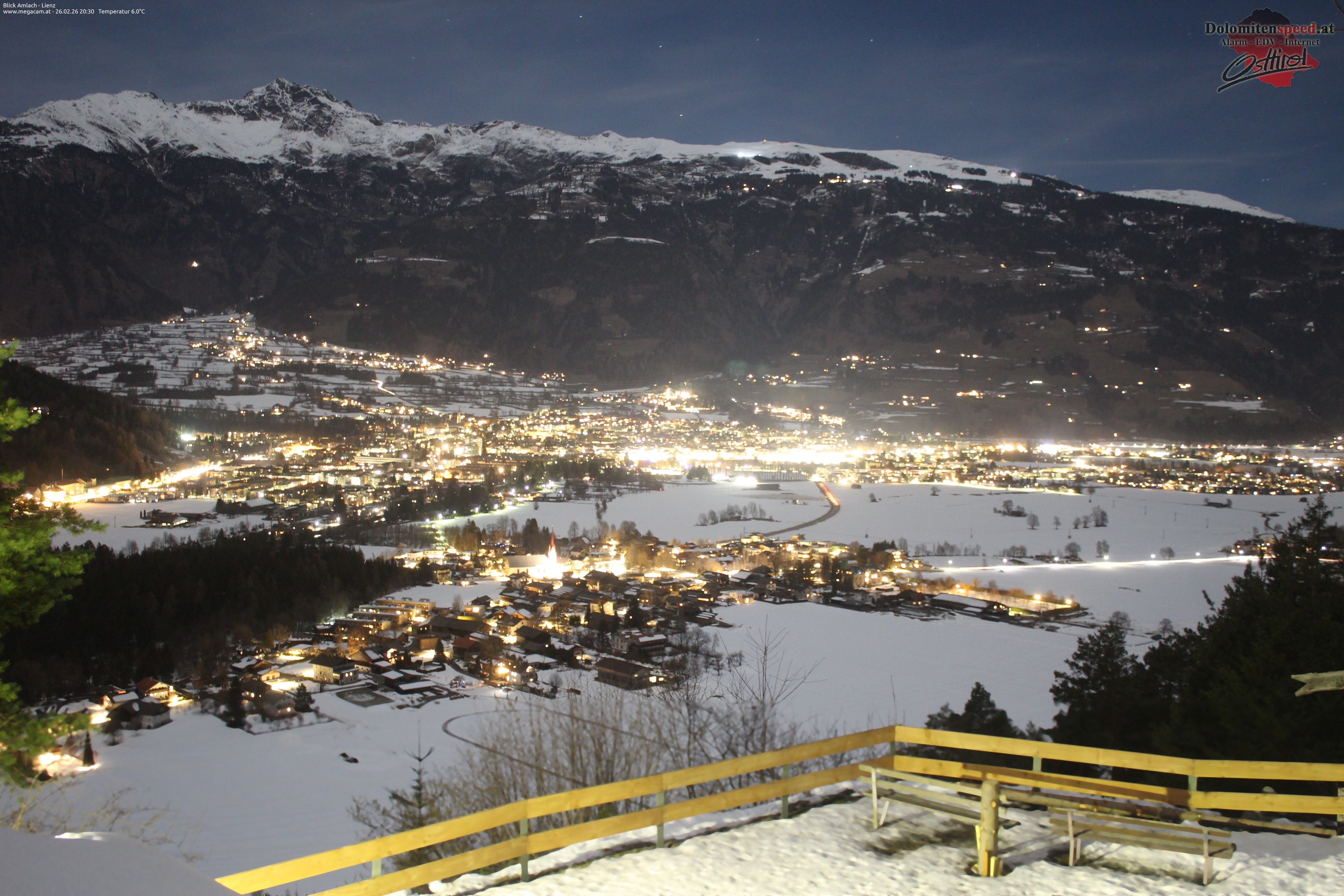 Archiviertes Webcam Bild: Blick über Amlach und Lienz am 26 Feb 2026 um 20:29 Uhr Aktuell