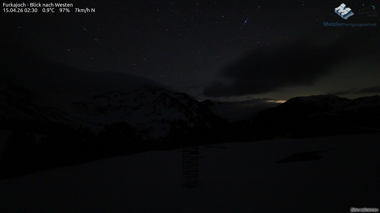 Archiviertes Webcam Bild: Furkajoch Blick nach Westen am 15.04.2026 um 02:26 Uhr 02:00