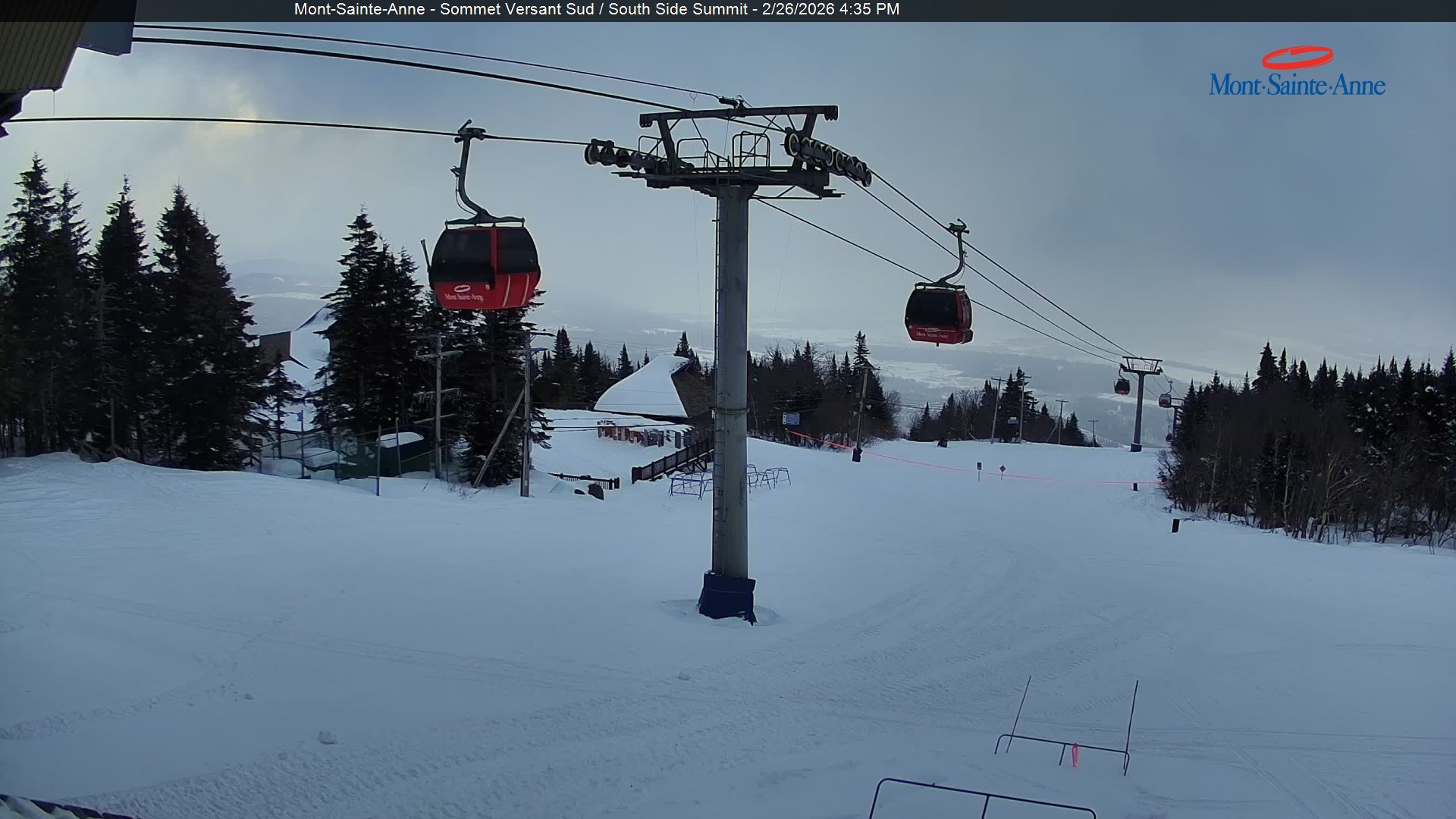 Diese Webcam zeigt den Blick vom Gipfel des Mont Sainte Anne nahe der kanadischen Großstadt Quebec Richtung Süden. Der Gipfel befindet sich ca. 800 Meter ü. NN. Das Skigebiet Mont Sainte Anne zählt mit seinen 31 Abfahrten zu den größeren Skigebieten in Kanada.