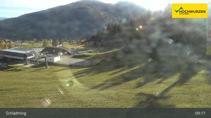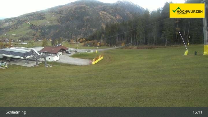 Die Webcam eröffnet den Blick über die Talstation der Gipfelbahn Hochwurzen sowie den Sessellift Rohrmoos II.