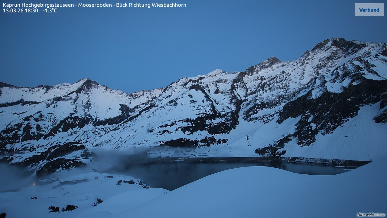 Die Webcam befindet sich am Westhand über dem Mooserboden-Stausee an einem Brunnenhaus. Der Blick ist Richtung Osten gerichtet. In der Mitte ist das Heinrich-Schwiger-Haus zu sehen. Dahinter erkennt man das Große Wiesbachhorn und links den Hohen Tenn.