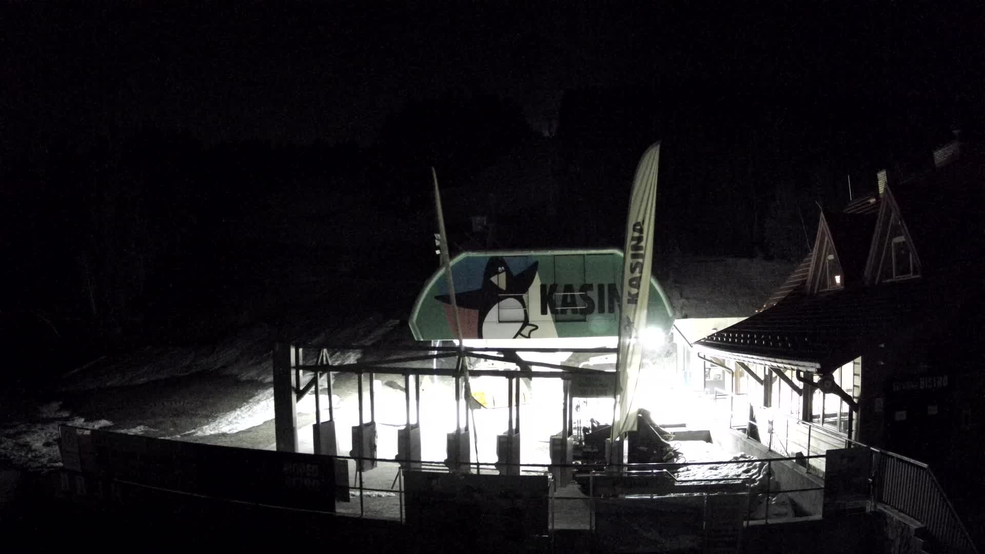 Zu sehen ist die Talstation des 6er-Sessellifts im polnischen Skigebiet Kasina an der 1.007 Meter hohen Śnieżnica.