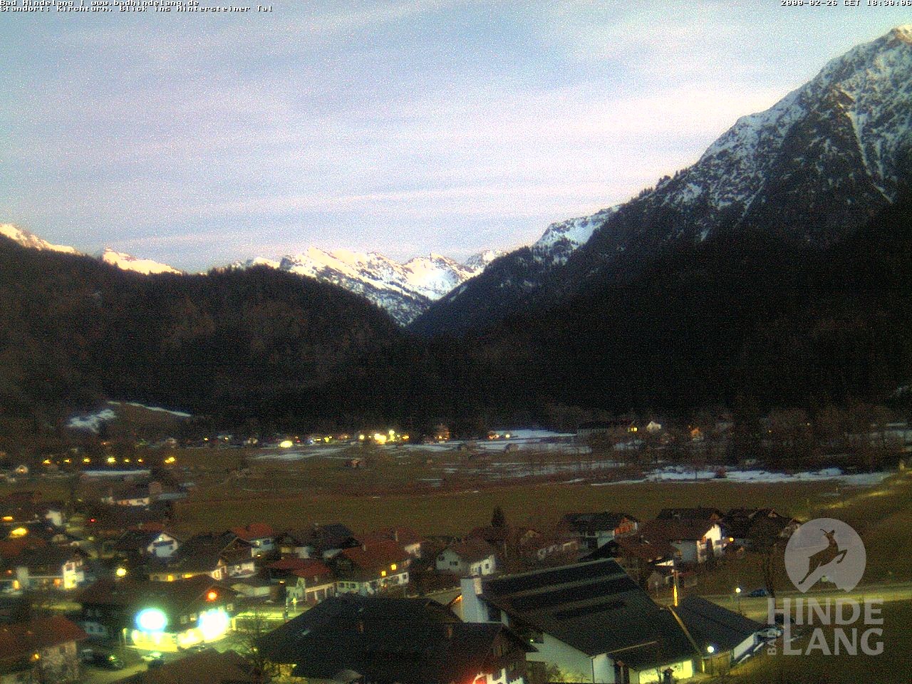 Archiviertes Webcam Bild: Bad Hindelang: Blick vom Kirchturm am 26 Feb 2026 um 18:21 Uhr Aktuell