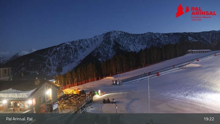 Archived webcam image showing Vallnord - Pal: View of La Massana Base Station on 26 Feb 2026 at 19:32 Aktuell