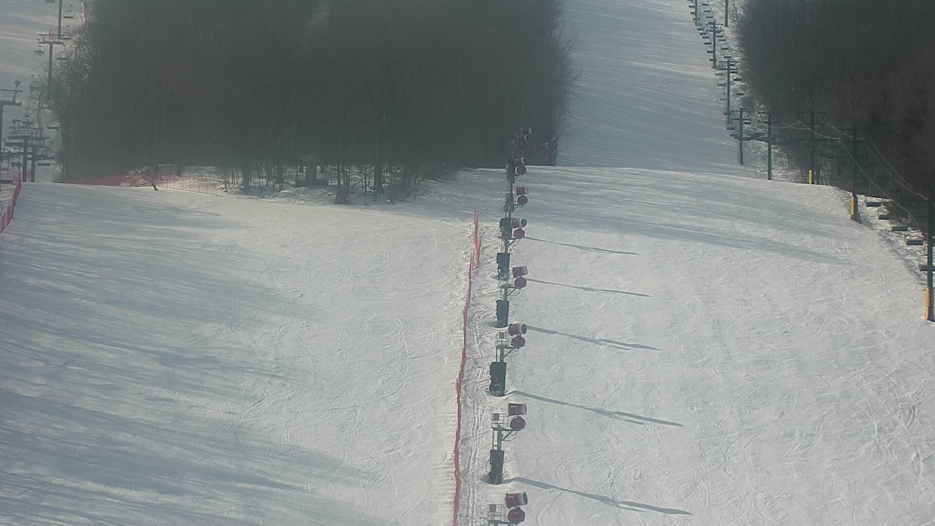 Die Webcam zeigt dir den Blick auf den Rocket Triple Sessellift im Skigebiet Bristol Mountain in New York, USA. Für Schneesicherheit und optimale Pistenverhältnisse ist dank ausreichen Schneekanonen gesorgt, wie auf dem Bild gut zu erkennen ist.