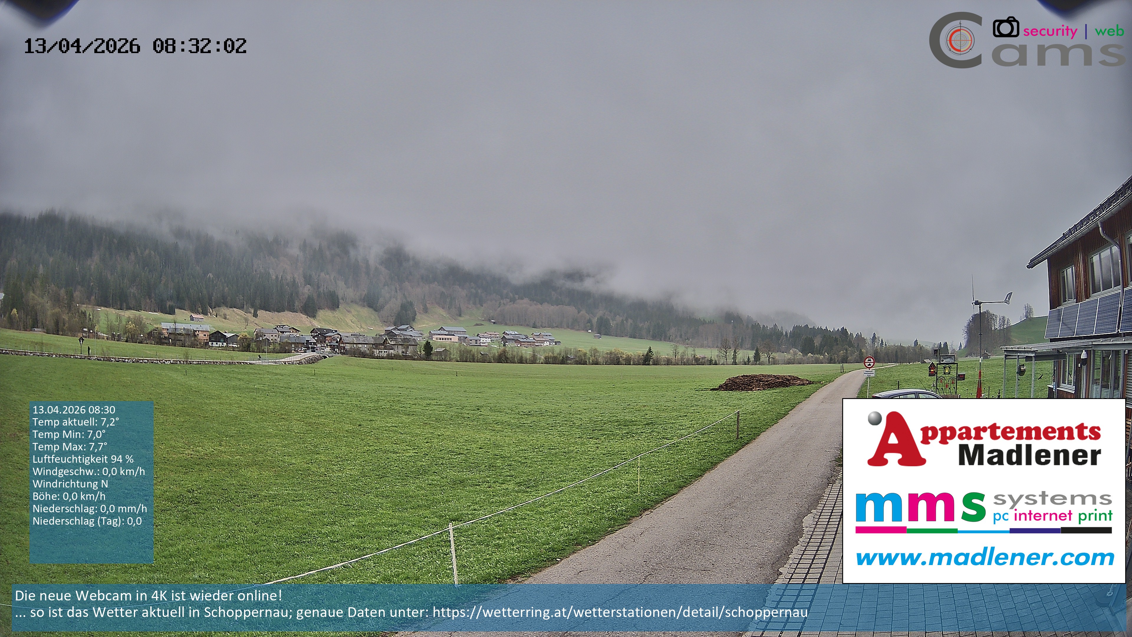 Archiviertes Webcam Bild: Schoppernau Unterdorf am 13.04.2026 um 08:30 Uhr Aktuell