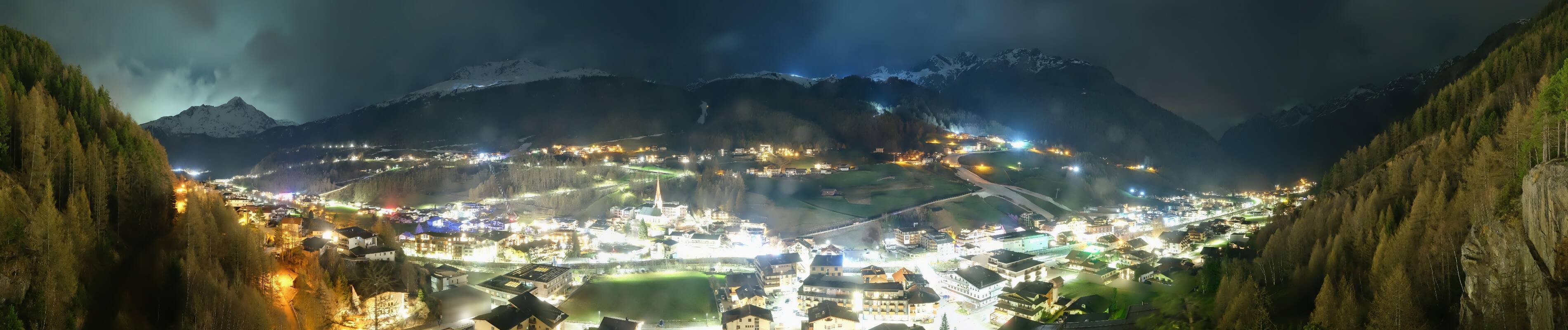 Toller Panoramablick auf Sölden im Ötztal. Die Kamera ist oberhalb der Freizeit Arena positioniert und gibt einen guten Überblick über den beliebten Tiroler Skiort.