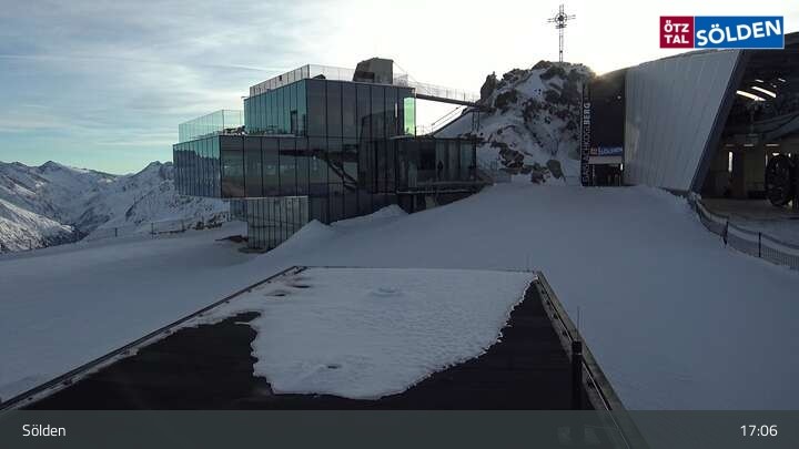 Die Webcam zeigt die Bergstation der Gaislachkogelbahn in Sölden auf knapp über 3000 Metern.