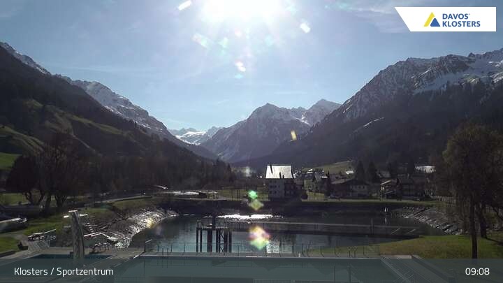 Archived webcam image showing Sport center Klosters on 17 Apr 2026 at 09:33 Aktuell