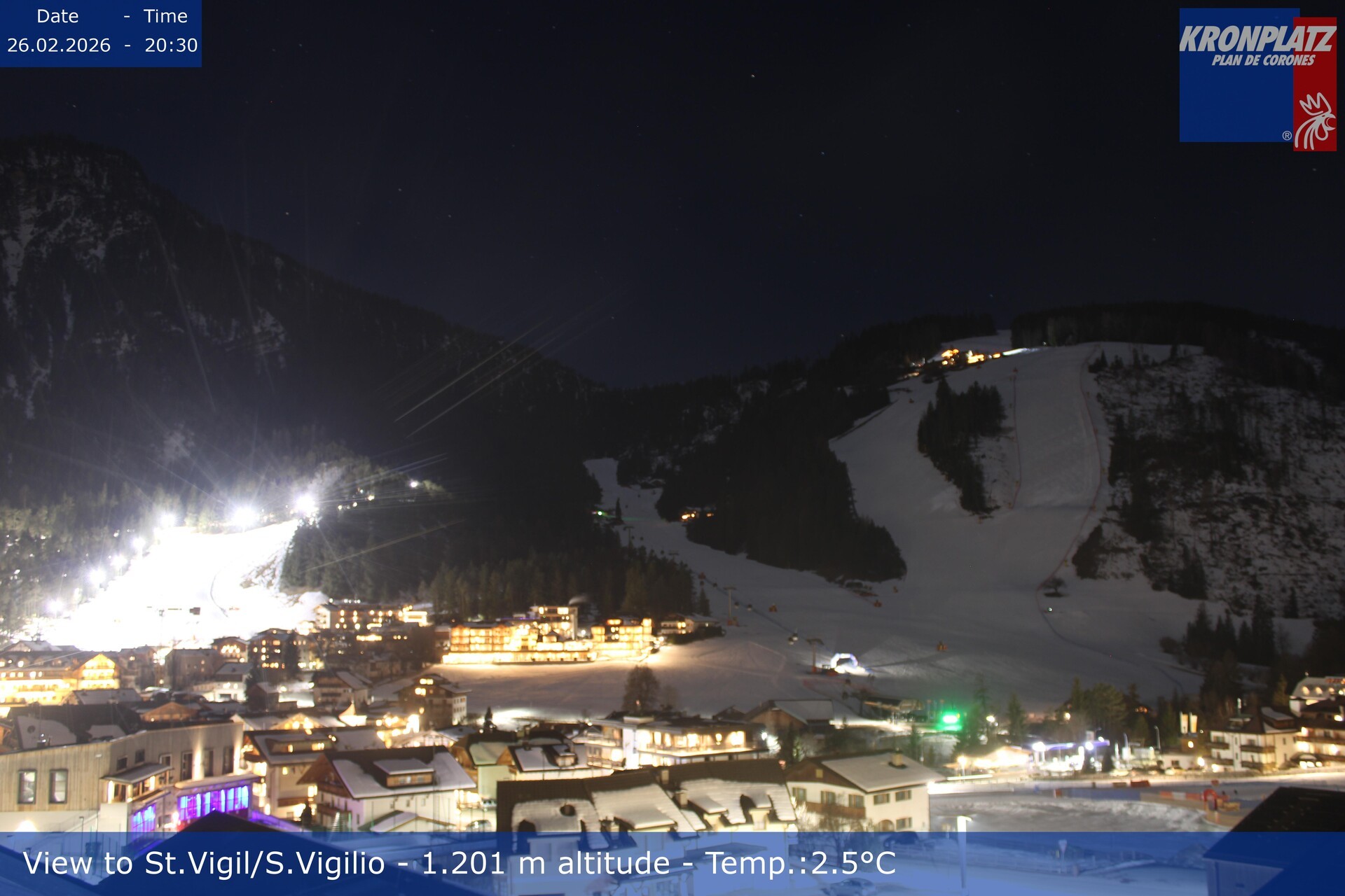 Archived webcam image showing San Vigilio at Plan de Corones on 26 Feb 2026 at 20:20 Aktuell