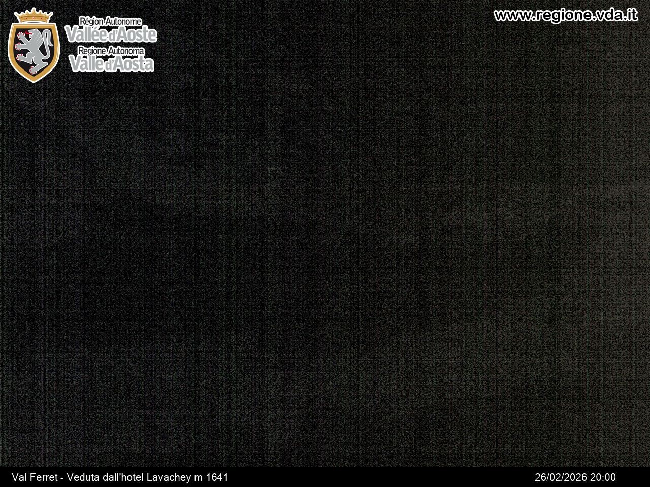 Archiviertes Webcam Bild: Val Ferret - Aostatal am 26 Feb 2026 um 20:21 Uhr Aktuell