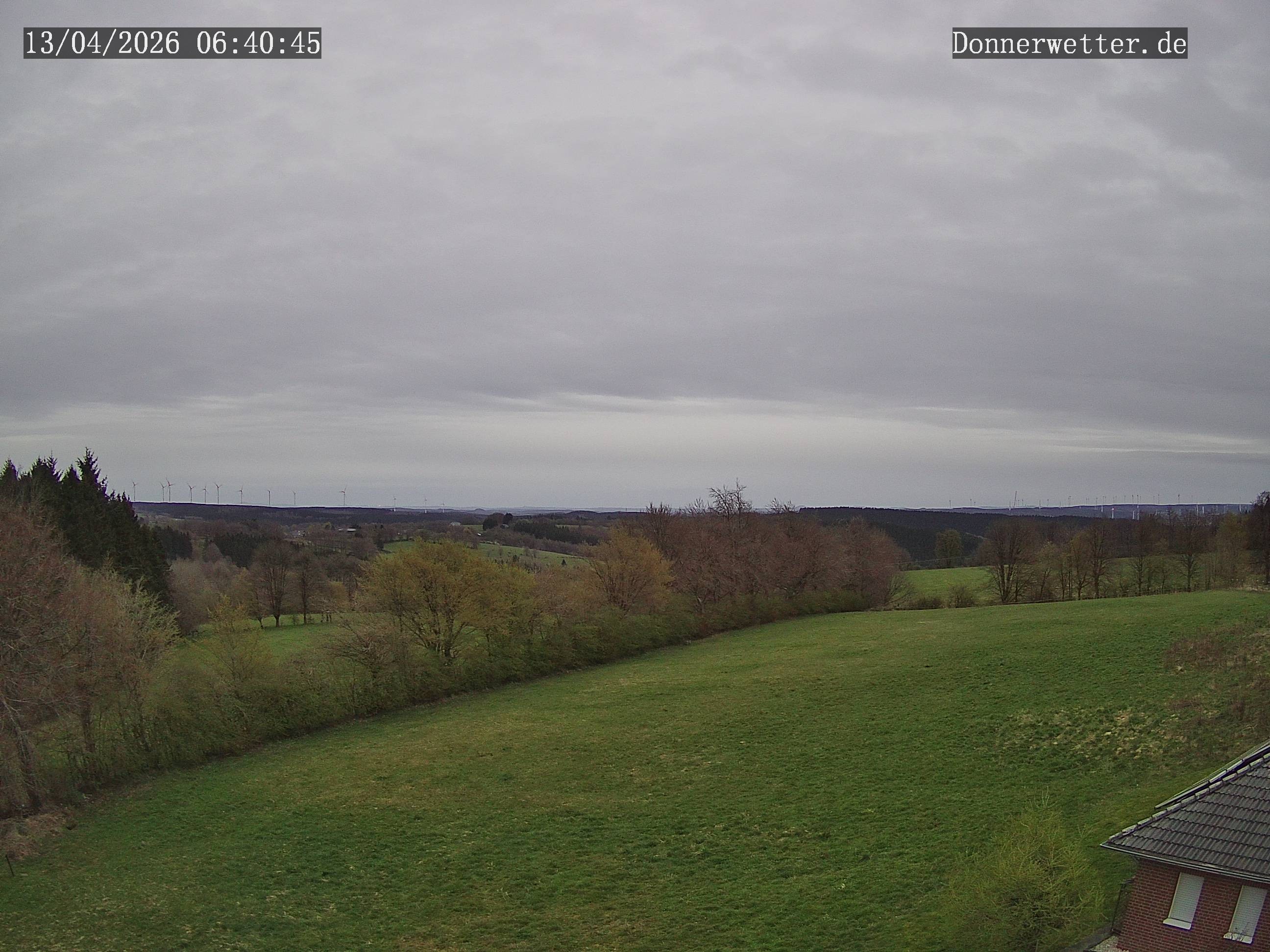 Die Webcam ist am Wettermasten am Weißen Stein in der Eifel positioniert und zeigt den Blick Richtung Südosten. Bei guter Sicht sind die Vulkanberge rund um die Hohe Acht zu erkennen.