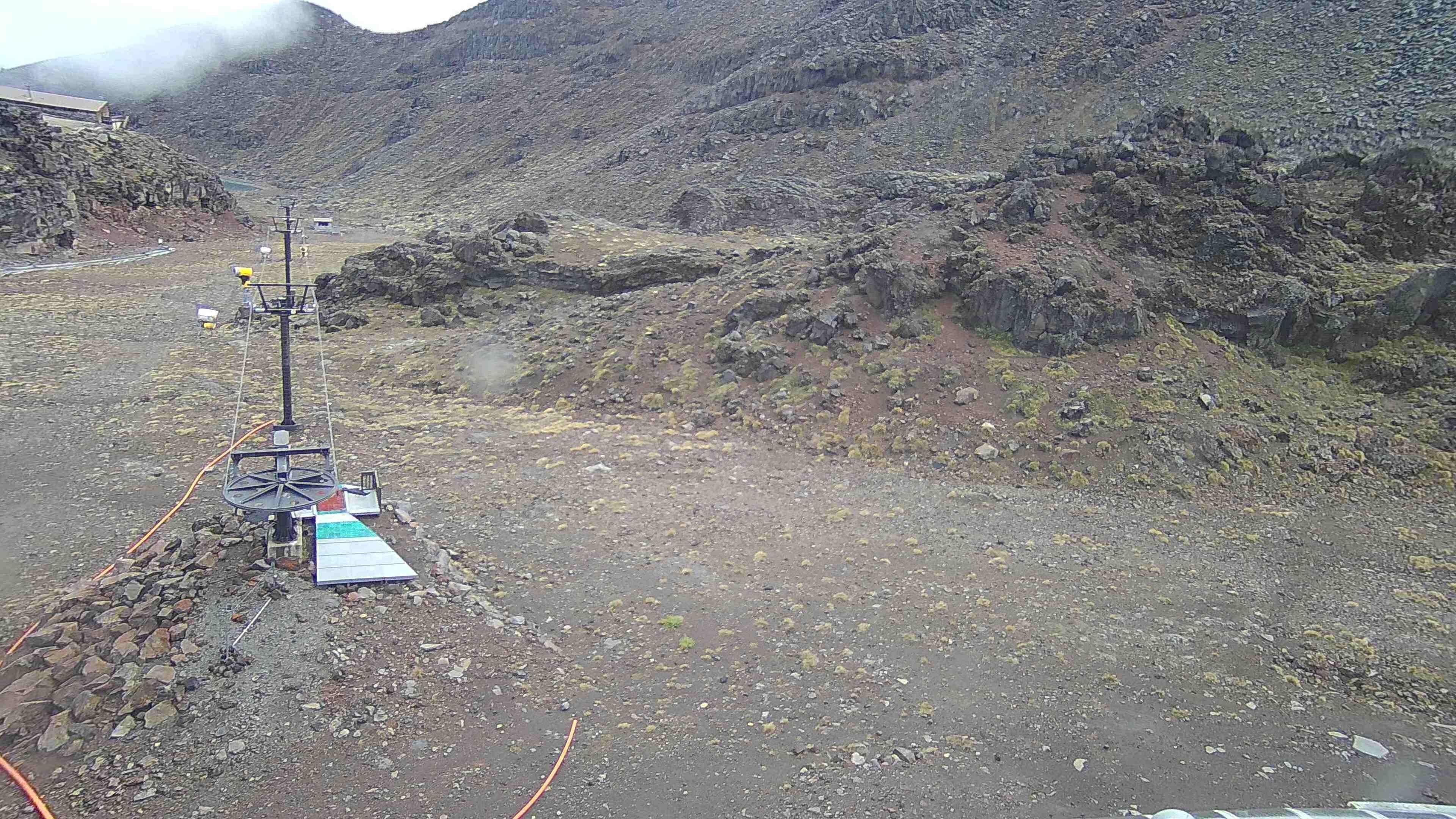 Blick auf den Sessellift "Double Happy Chair" und die dortige Abfahrt im Bereich 'Happy Valley' des Skigebiets Whakapapa am Mount Ruapehu. Der Bereich, der sich vor allem für Familien mit Kindern eignet, liegt direkt am Einstiegsort auf über 1600 Metern.